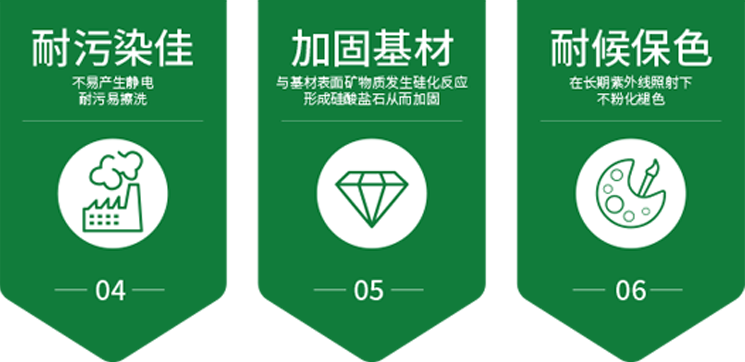 弗克風(fēng)?涂料采用納米二氧化硅作為膠凝物質(zhì),并根據(jù)應(yīng)用需要,采用自主工藝對(duì)硅酸鹽材料進(jìn)行改性,弗克風(fēng)技術(shù)成功攻克傳統(tǒng)無機(jī)涂料穩(wěn)定性差、易泛堿、難調(diào)色的難題,發(fā)明出擁有國家發(fā)明專利技術(shù)的弗克風(fēng)硅質(zhì)漆。